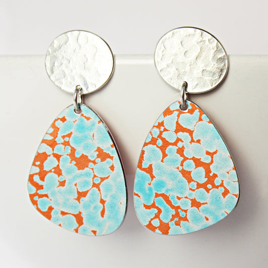 LCH2 Little silver oval drop earrings with patterned anodised aluminium skirtRegular price £50.00 GBPRegular priceUnit price per-