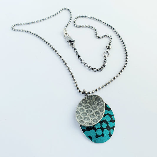 SL20 Oxidised textured silver and turquoise blue spotty ovals pendantRegular price £30.00 GBPRegular priceUnit price per£72.00 GBPSale price £30.00 GBPSold out