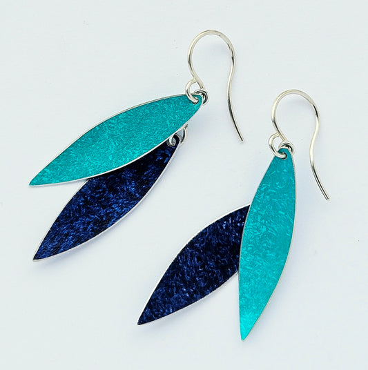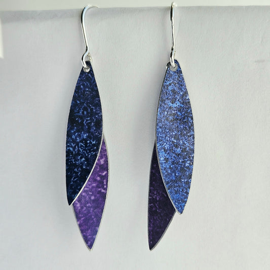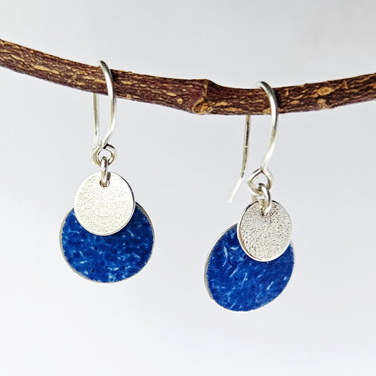 SL18 Silver and indigo Alyssa print oval drop earrings