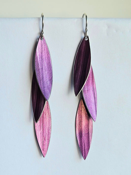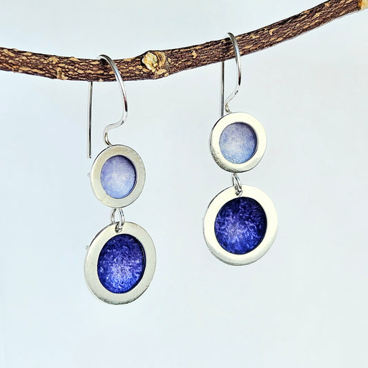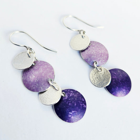 SL21 Mauve, purple and silver disc cascade drop earrings