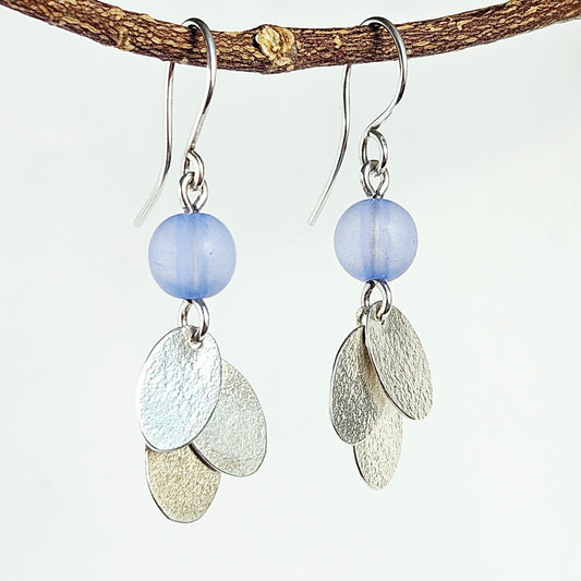 SL4 Textured silver disc with a green Alyssa print rectangle drop earrings