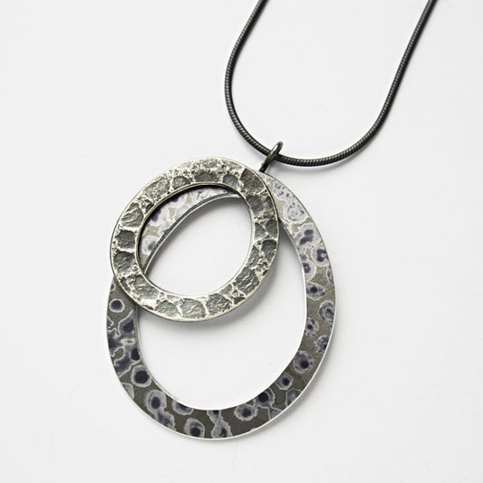 TS18 Double Hooped Pendant In Textured Silver And Spot PrintRegular price £77.00 GBPRegular priceUnit price per-