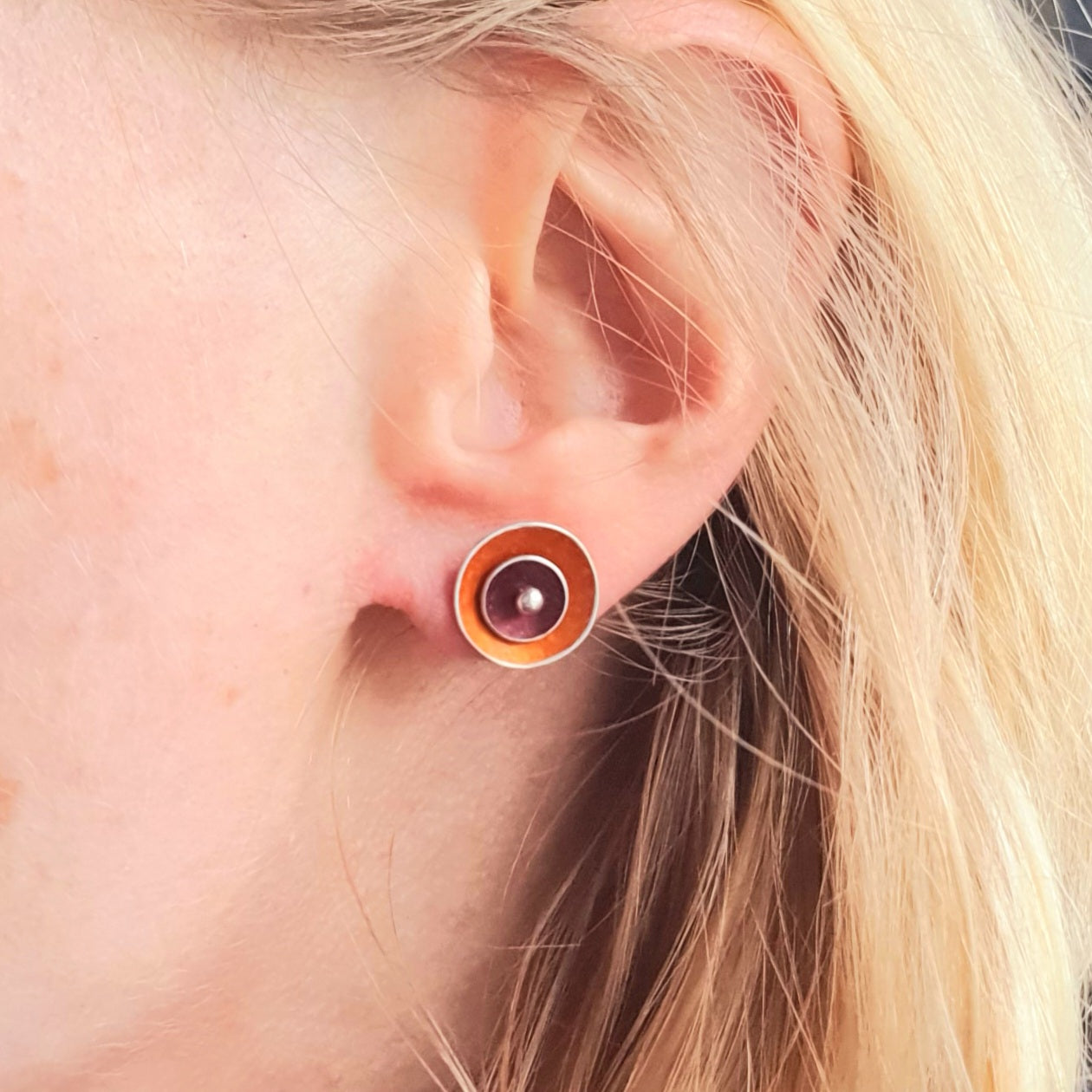 Anodised aluminium needs very little after care as it does not oxidise and tarnish like silver over time. If it needs cleaning this can easily be done with soap and warm water. Best not to clean it with anything abrasive so that it doesn't damage the colour. The colour will not fade in daylight and is completely waterproof. If it is continually rubbed against another metal is may develop a dull cast, or develop scratches so this should be kept in consideration if storing the jewellery in a box with other things for example.