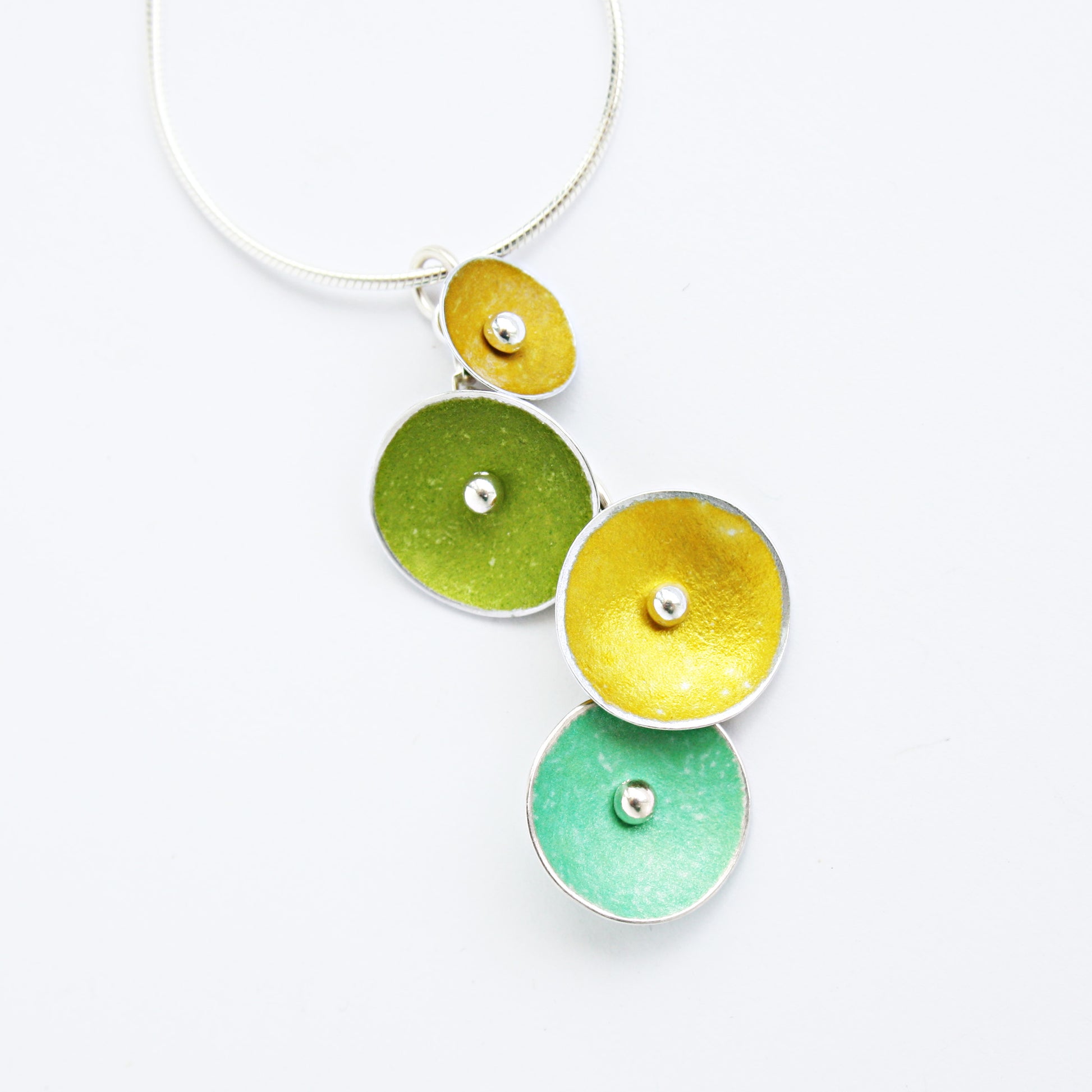 Anodised aluminium needs very little after care as it does not oxidise and tarnish like silver over time. If it needs cleaning this can easily be done with soap and warm water. Best not to clean it with anything abrasive so that it doesn't damage the colour. The colour will not fade in daylight and is completely waterproof. If it is continually rubbed against another metal is may develop a dull cast, or develop scratches so this should be kept in consideration if storing the jewellery in a box with other things for example.