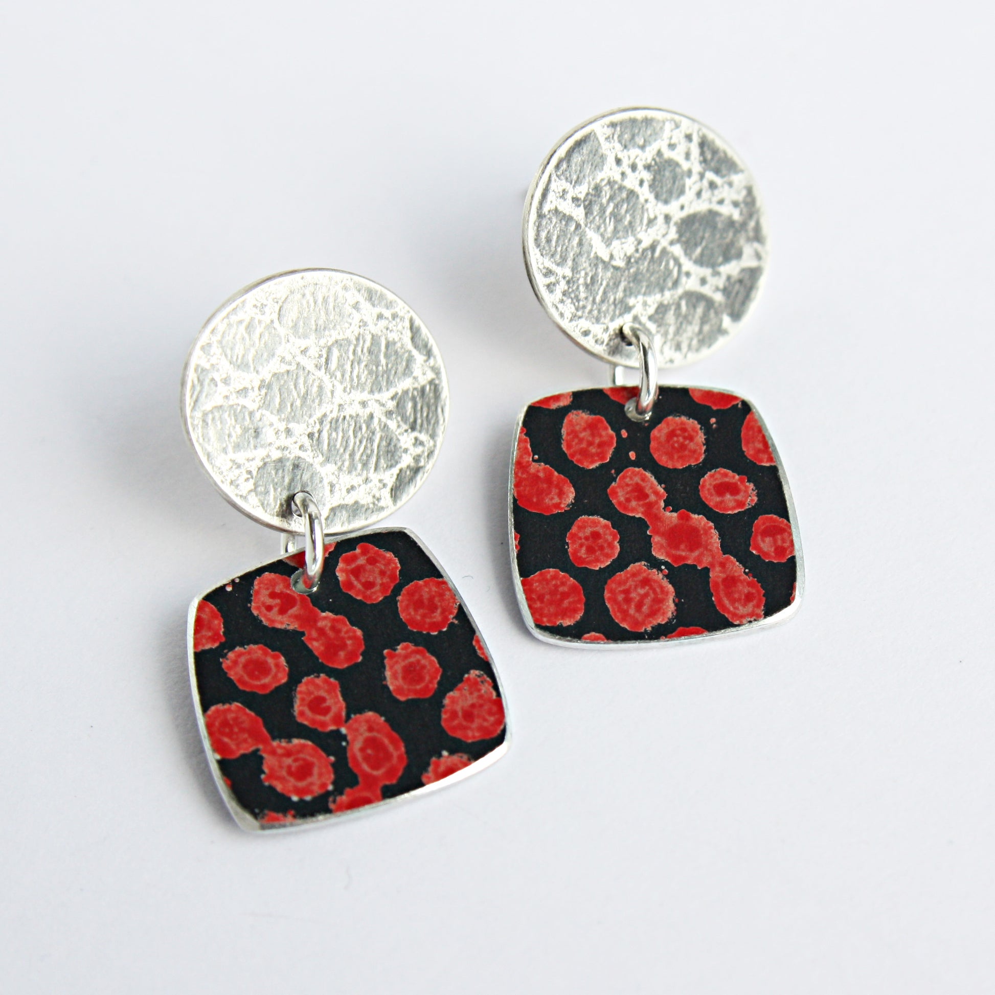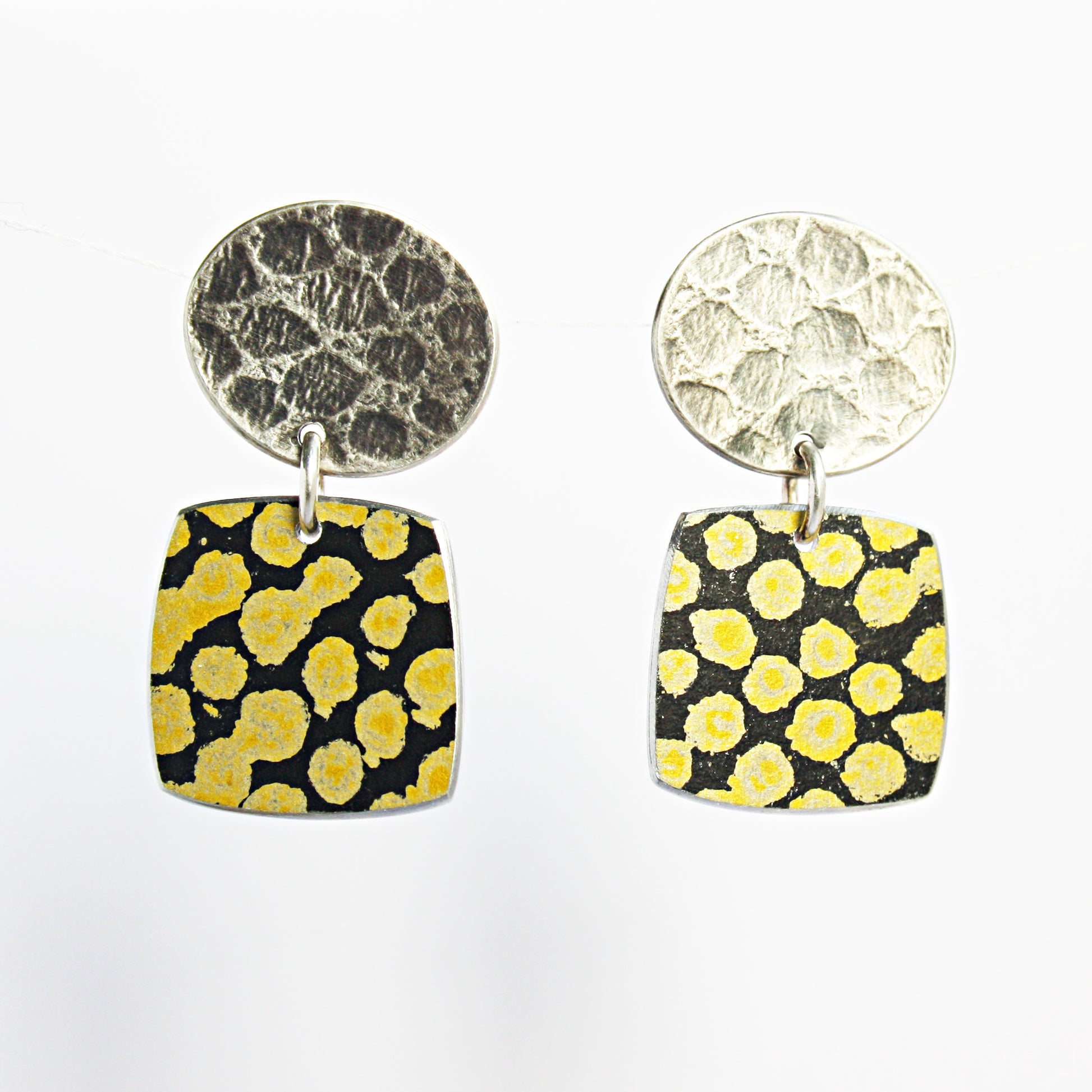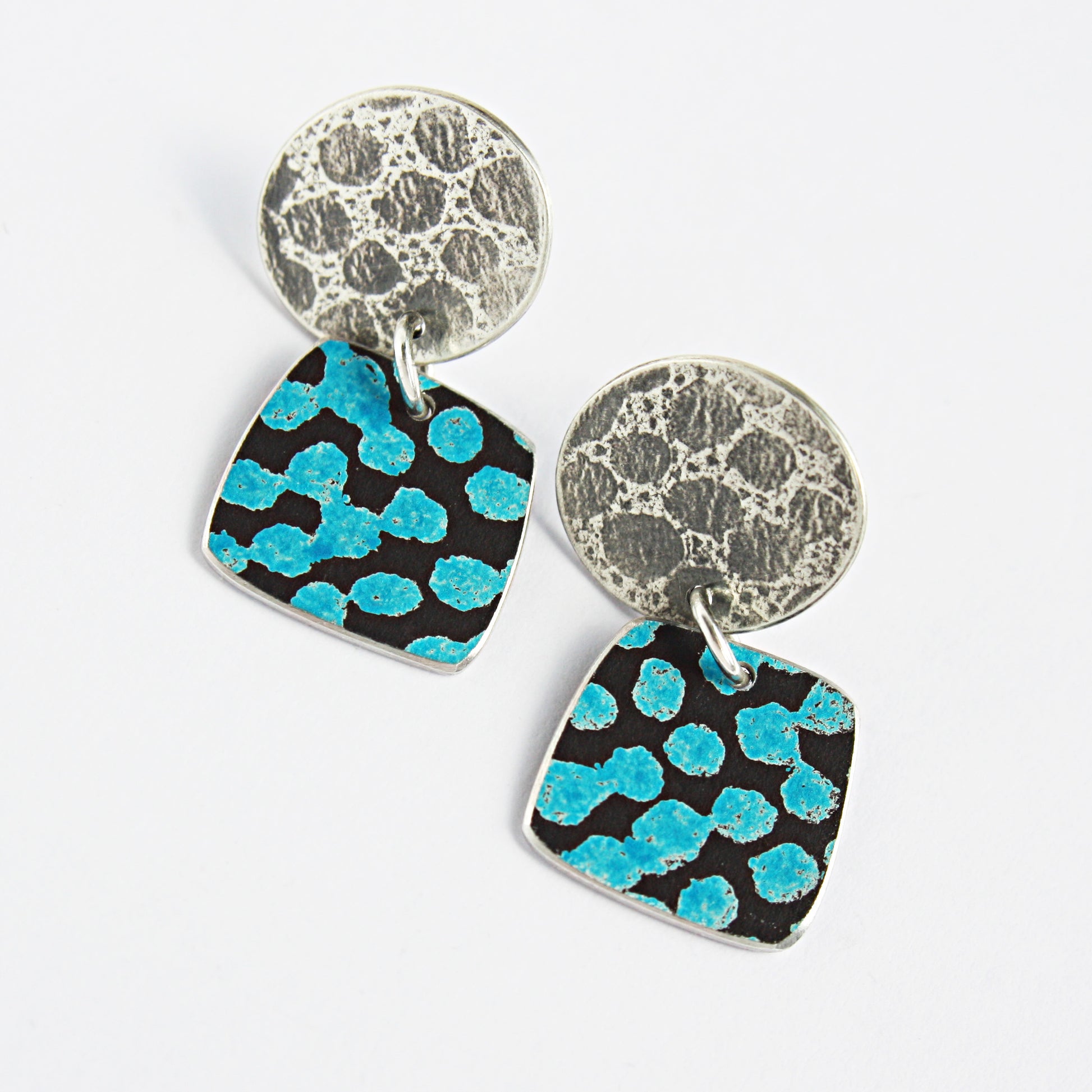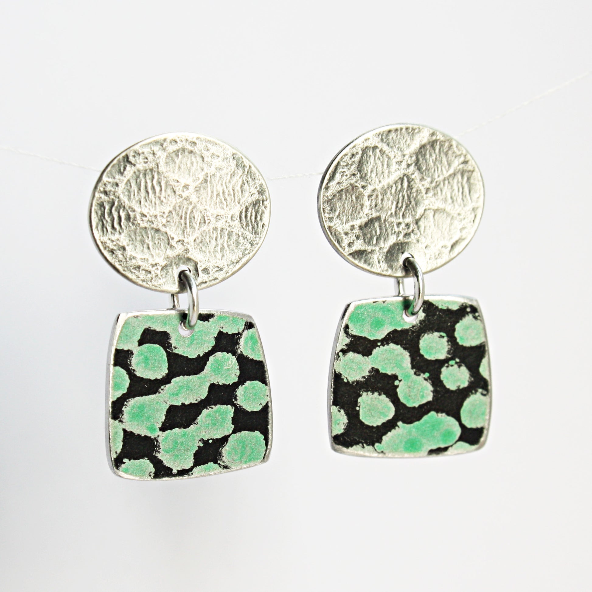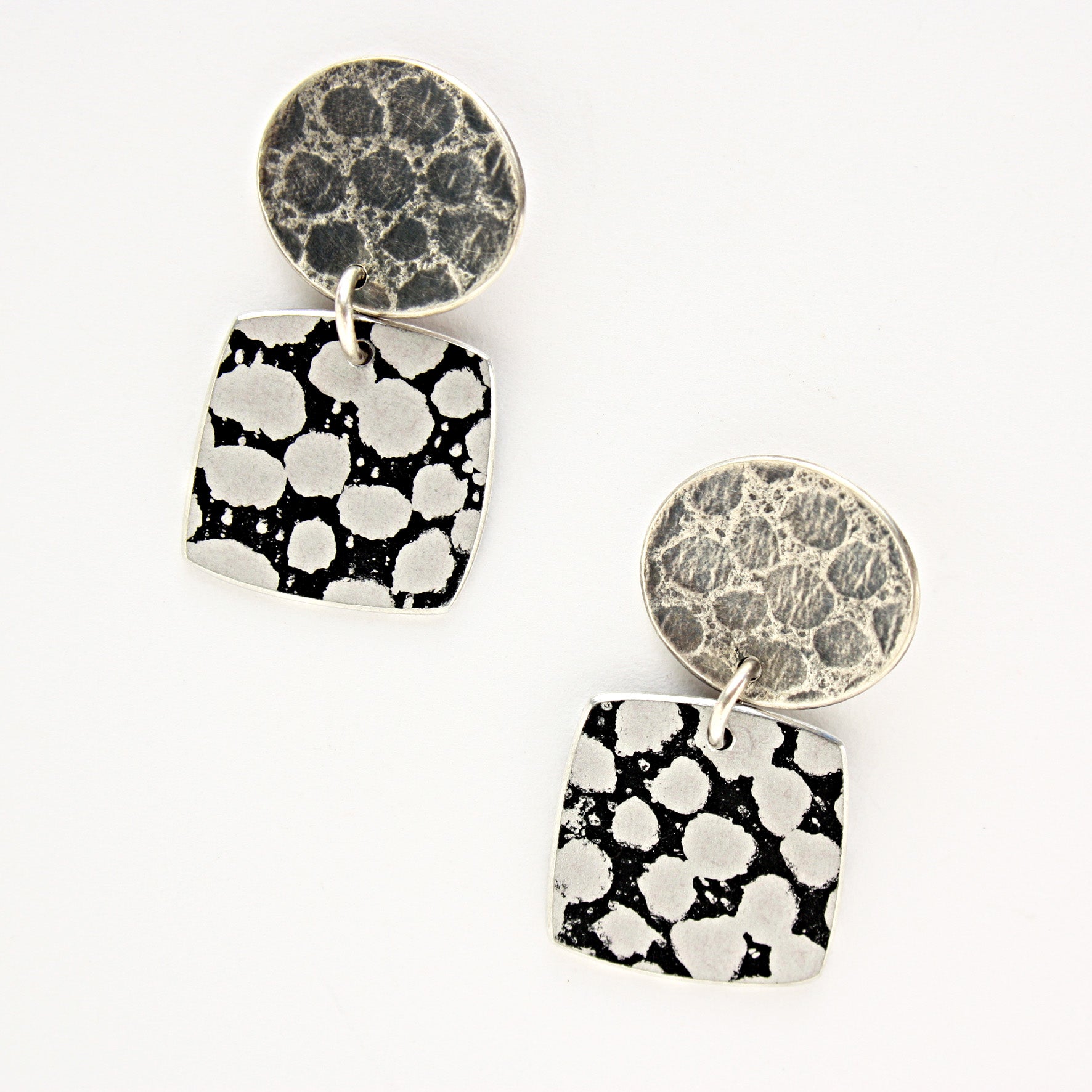 TS12 Silver Disc Stud And Spot Print Square Drop Earrings