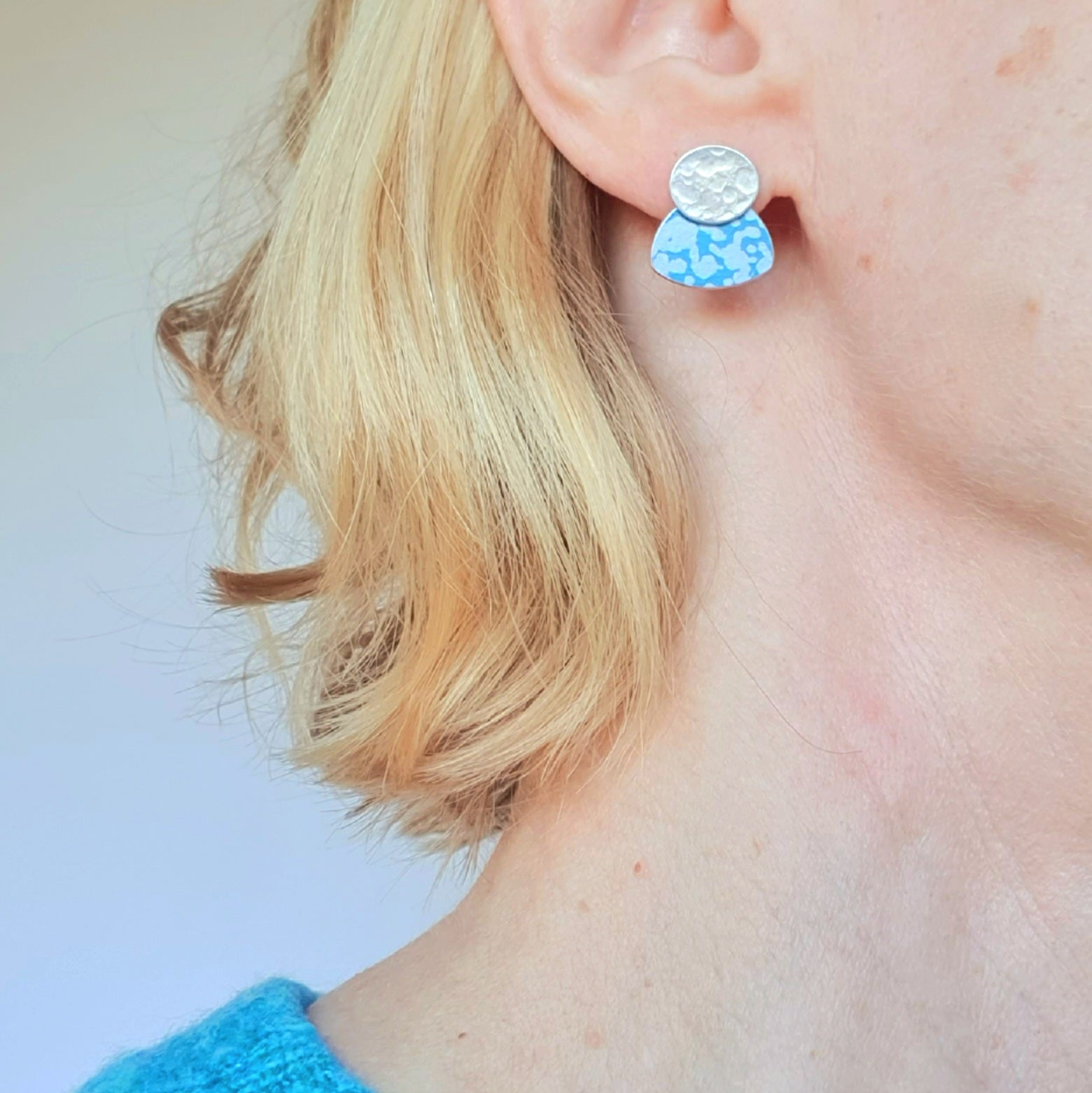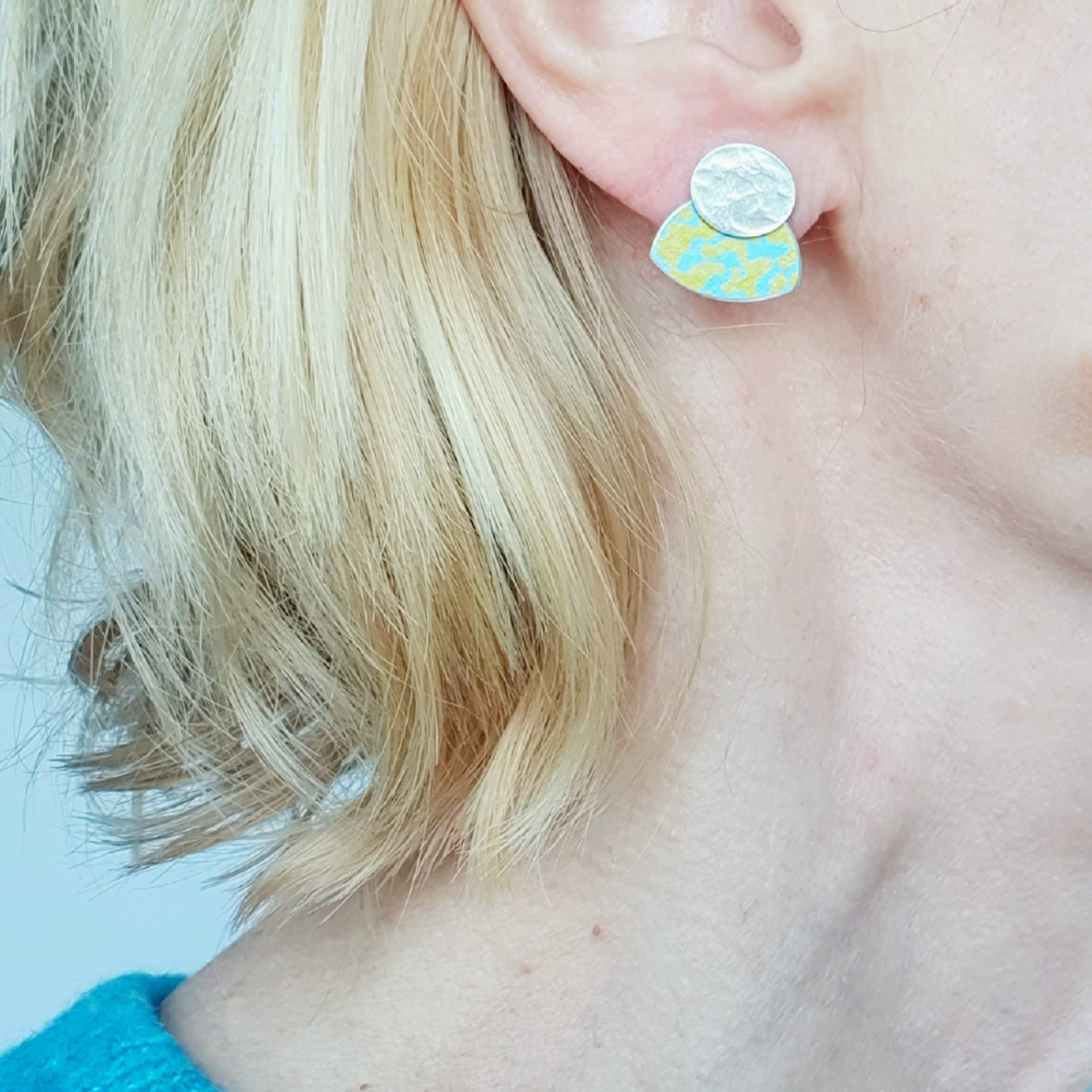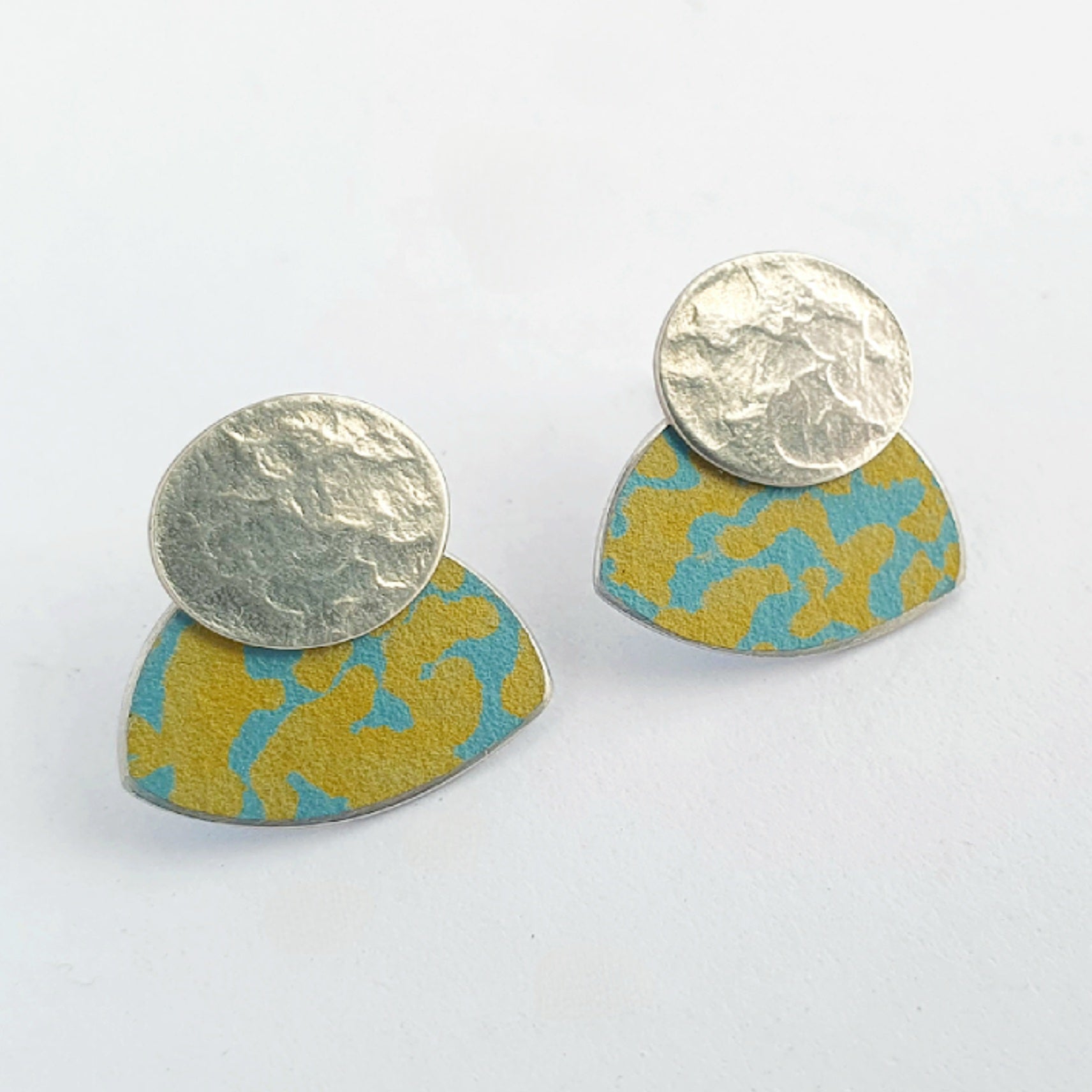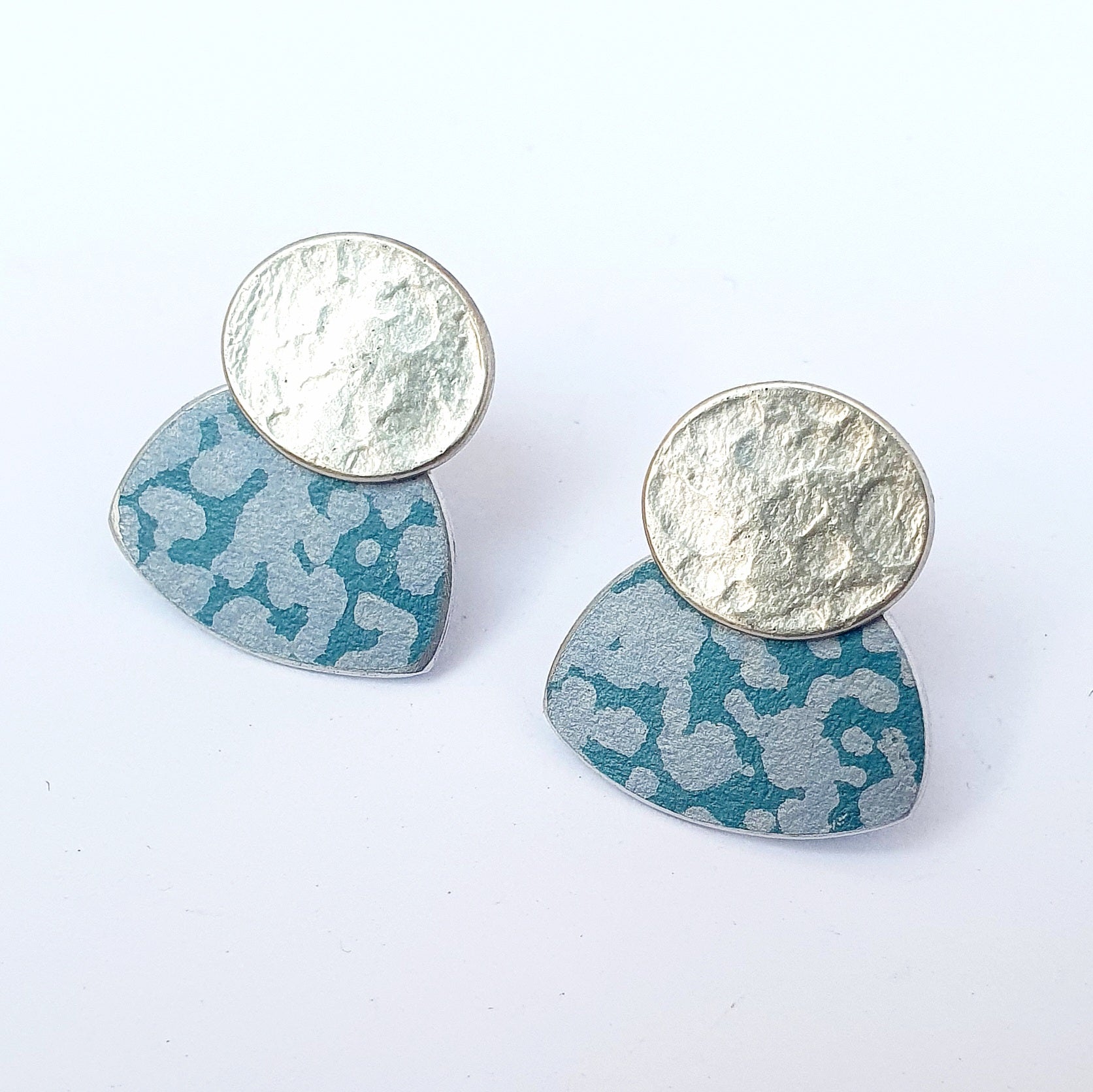 LCH1 Small silver oval and patterned anodised aluminium stud earrings